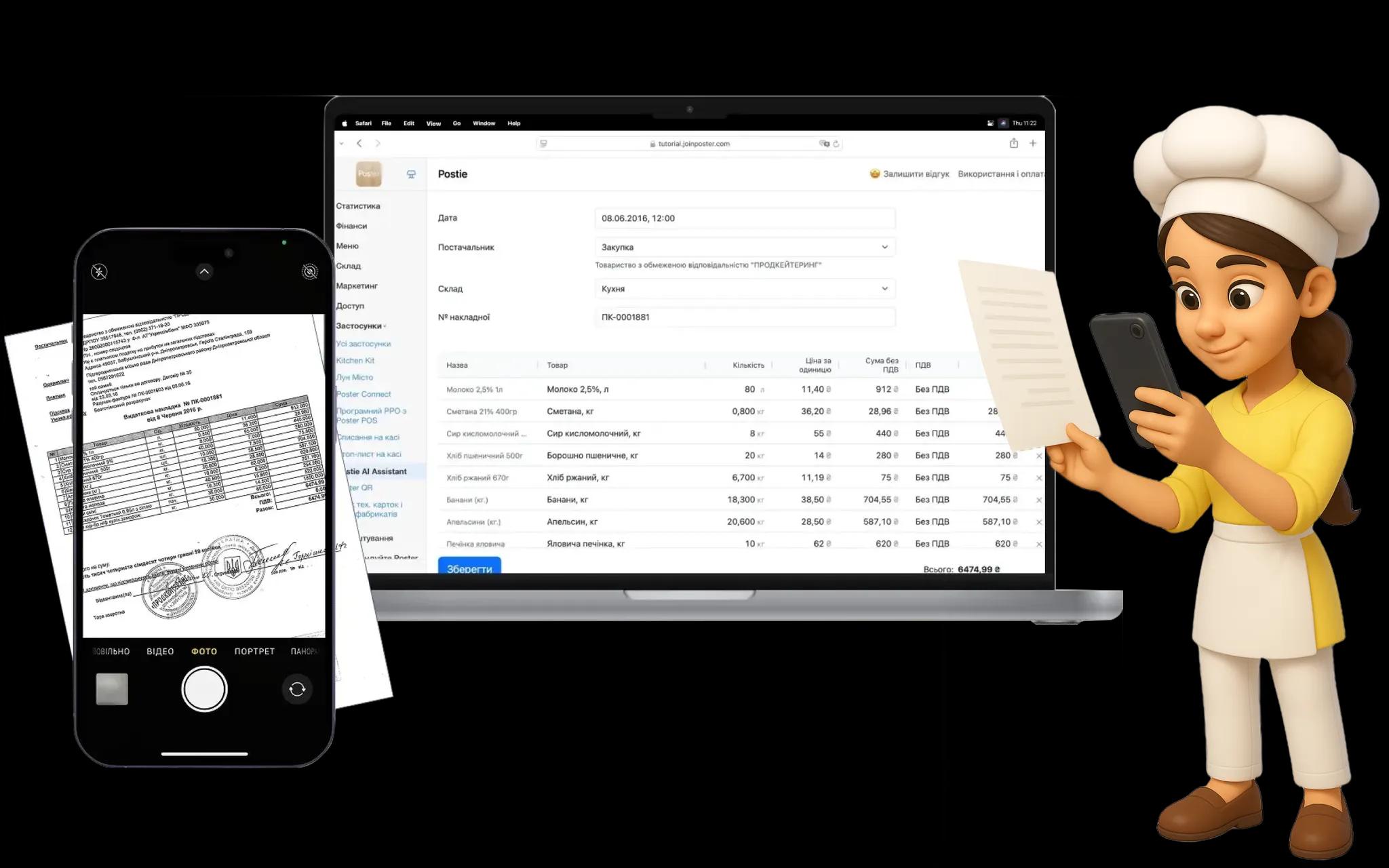 Представьте: вы принимаете поставку продуктов, и поставщик передаёт бумажную накладную. Вам не нужно вручную вносить каждый товар — Postie AI автоматически обработает документ и сохранит всё в системе без дополнительных усилий с вашей стороны.